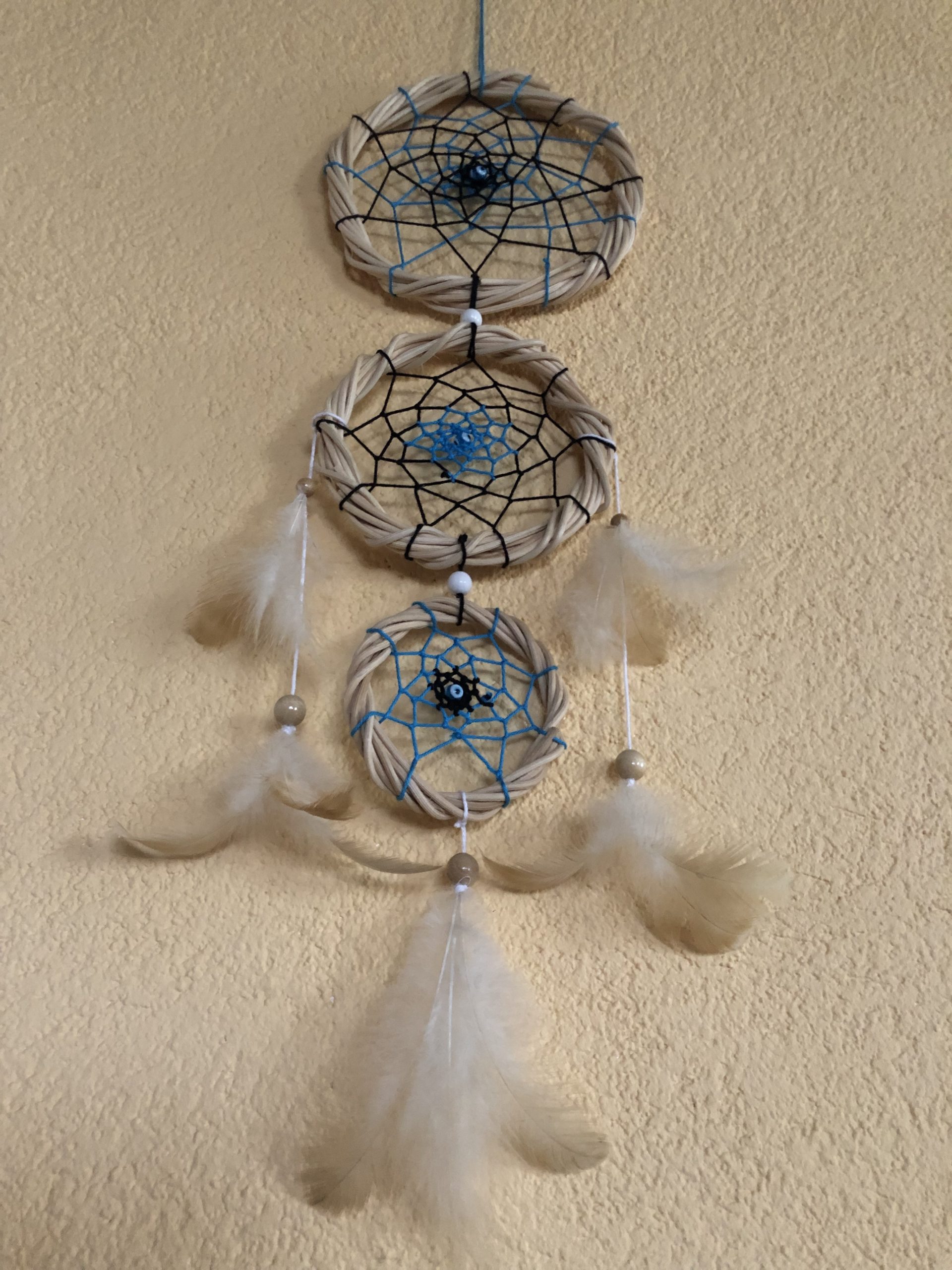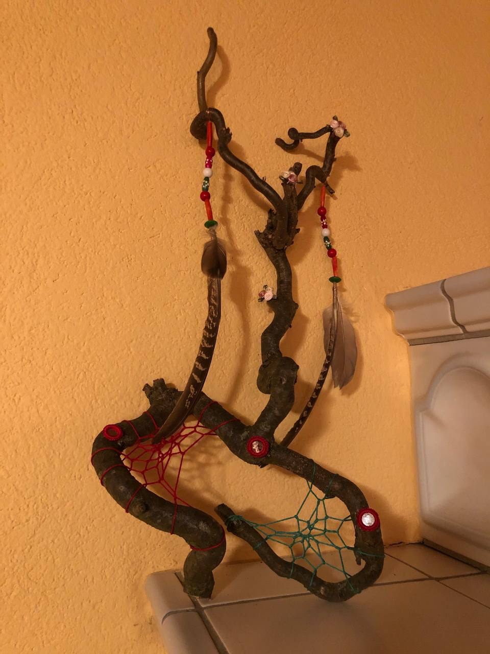 Ich habe die Intention, Deinen Schlaf zu verbessern und positive Energie in den Raum Deiner Wahl einzuladen und Dir einen individuellen Talisman zu gestalten. Durch das arbeiten mit Holz findest du auch 3-seitige Objekte – sie symbolisieren die Verbindung von Körper, Geist und Seele. Wir können das jeweilige Element, welches bei Dir Stärkung bedarf, durch den für dich passenden Traumfänger aktivieren.