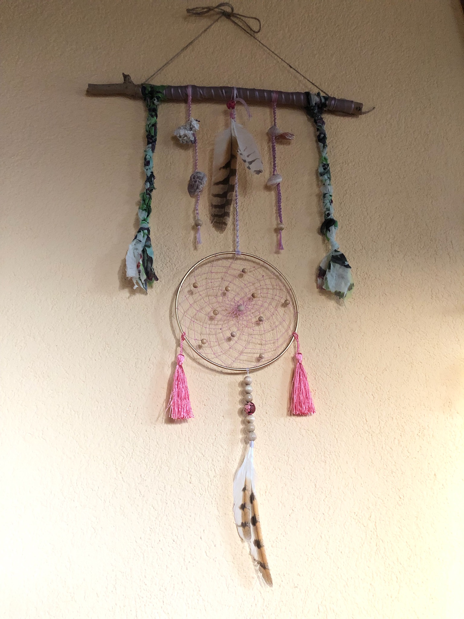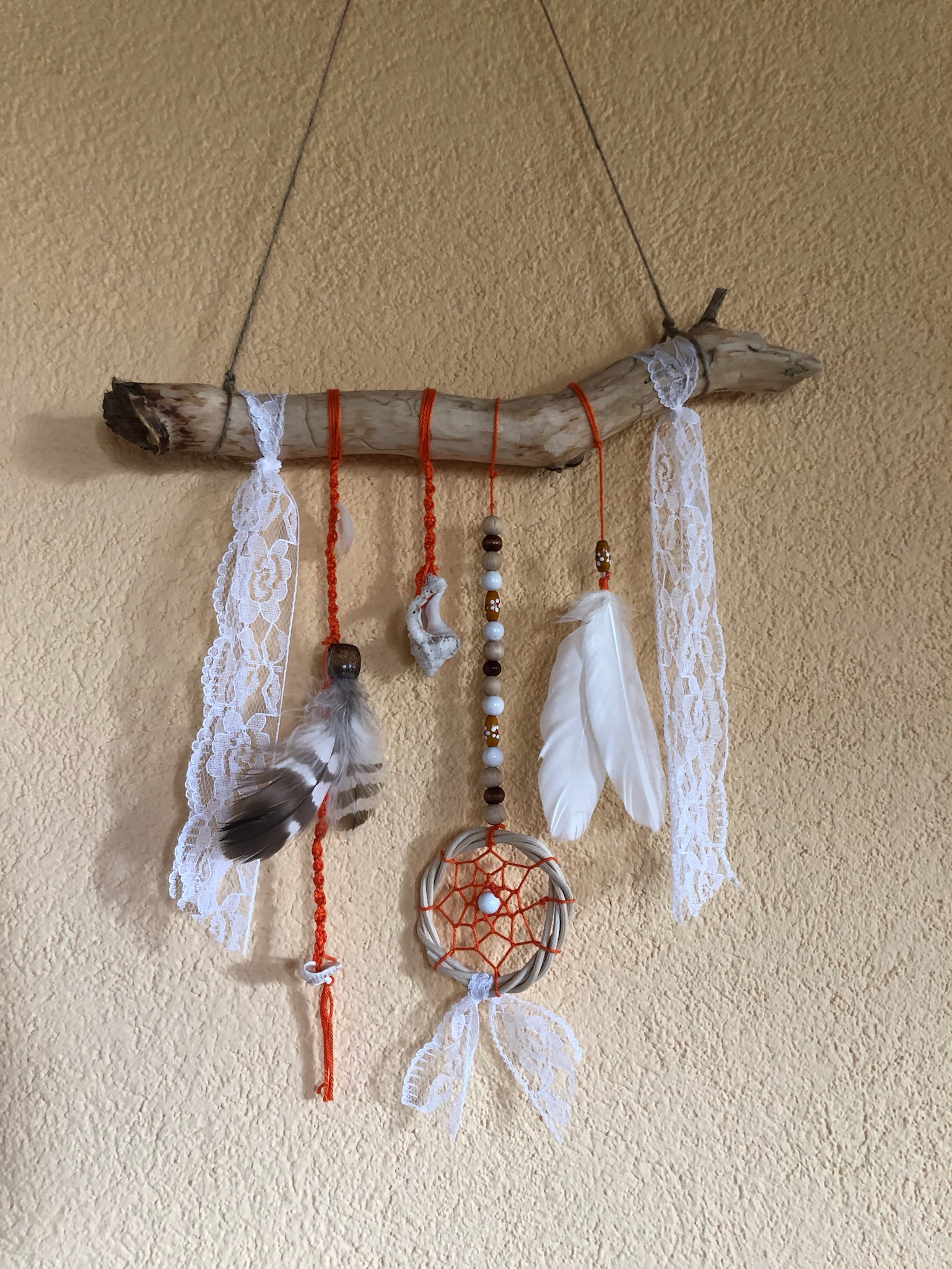 Die Natur ist der größte Künstler… auf meinen Spaziergängen und Wanderungen über Wiesen, im Wald, am See, in den Bergen oder am Meer finden sich immer wieder kleine Geschenke, die ich für meine handgemachten Traumfänger verwende. Ob außergewöhnlich gemustertes Treibholz, die Feder einer Wildgans, ein Stein, der mir ins Auge fällt oder eine Muschel am Strand. Alles Dinge, mit denen ich heute auch kreativ arbeite und sie nicht nur mehr sammele. Neben den natürlichen Materialien und Perlen, werden auch Dinge wie Heilsteine, Modeschmuck oder geschenkte Bastelsachen aus anderen Materialien verwendet, recycelt. Jedes Projekt ist individuell.